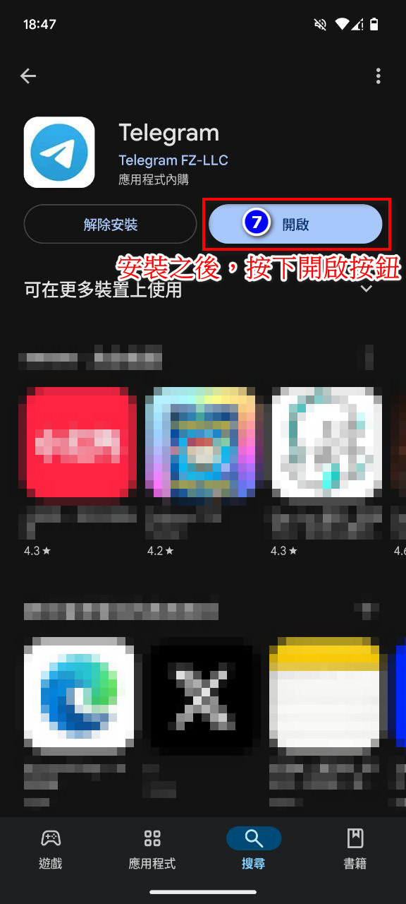 6.如果是按下「Telegram」的圖示,如圖,則按下「安裝」。
