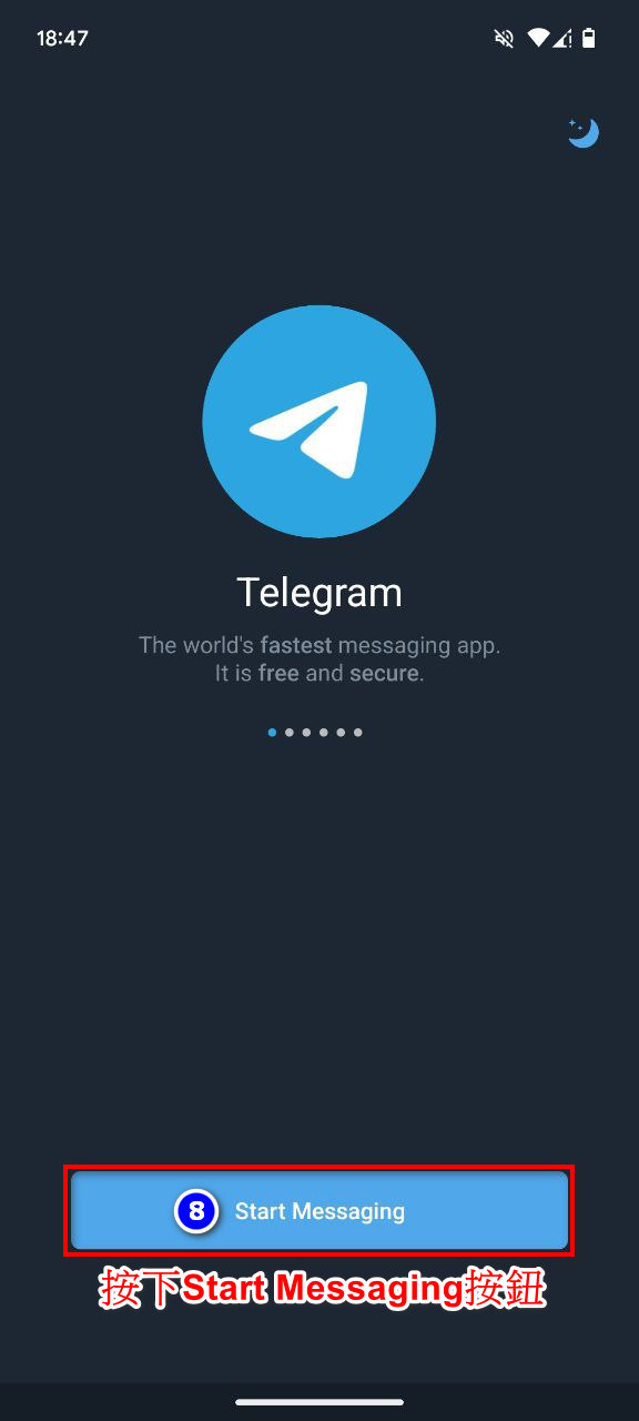 8.進入Telegram,按下「Start Messaging」按鈕。