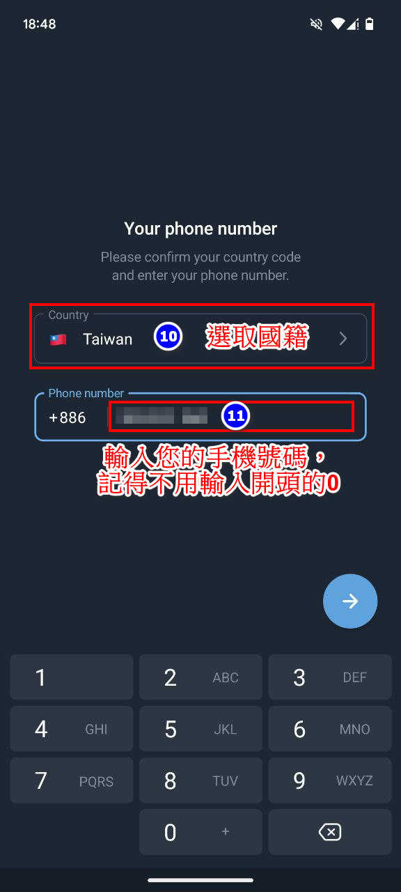 11.輸入您的手機號碼,記得不用輸入開頭的0。